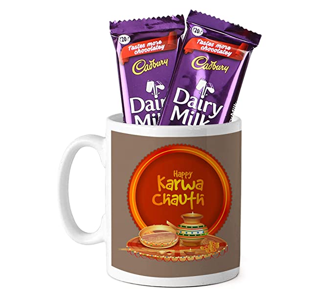 Order Online Cup With Chocolate Karwa Chauth Gift on cakegift.in.
