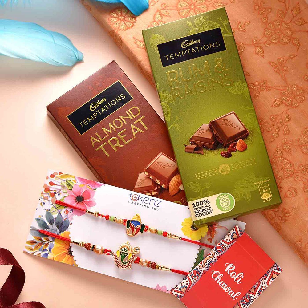 Ganesha Set Of 2 Rakhis With Hampers Select rating Give Ganesha Set Of 2 Rakhis With Hampers 1/5 Give Ganesha Set Of 2 Rakhis With Hampers 2/5 Give Ganesha Set Of 2 Rakhis With Hampers 3/5 Give Ganesha Set Of 2 Rakhis With Hampers 4/5 Give Ganesha Set Of 2 Rakhis With Hampers 5/5 Rate 0 Review(s) Write a review ₹1,098.90 Postal Code * Delivery Date * Shipping Option * - Select - Normal Delivery (10AM - 9PM) Standard Delivery Fix Time Delivery Early Morning Delivery (8:30 AM - 10:00 AM) Midnight Delivery Delivery Time * - Select - 9:30 AM - 11:00 AM 09:30 PM - 11.00 PM 10:00 AM - 09:00 PM 10:00 AM - 11.30 AM 10:00 AM - 1:00 PM 10:30 AM - 12.00 PM 11:00 AM - 12.30 PM 11:00 PM - 00:30 AM 11:30 AM - 1.00 PM 12:00 PM - 1:30 PM 12:30 PM - 2:00 PM 1:00 PM - 2:30 PM 1:00 PM - 4:00 PM 1:30 PM - 3:00 PM 2:00 PM - 3:30 PM 2:30 PM - 4:00 PM 3:00 PM - 4:30 PM 3:30 PM - 5:00 PM 4:00 PM - 5:30 PM 4:00 PM - 8:00 PM 4:30 PM - 6:00 PM 5:00 PM - 6:30 PM 5:30 PM - 7:00 PM 6:00 PM - 7:30 PM 6:30 PM - 8:00 PM 7:00 PM - 8:30 PM 7:30 PM - 9:00 PM 8:00 AM - 10:00 AM 8:00 PM - 9:30 PM 8:30 PM - 10:00 PM 9:00 PM - 10:30 PM Sender Name * Sender Mobile * Add to cart Buy Now Description Ganesha Set Of 2 Rakhis Cadbury Temptations Almond Treat (72 Gms each) Cadbury Temptations Rum & Raisins (72 Gms each) Roli & Chawal This is Courier Product and above delivery date is tentative and product will take 3 to 4 working days to be delivered at your doorstep.