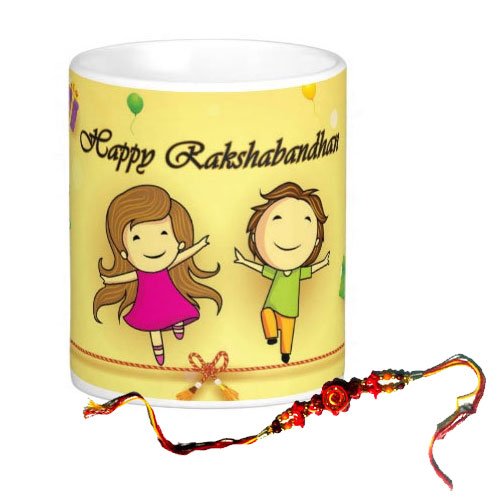 Special online Golden Mug With Rakhi available on cakegift.in